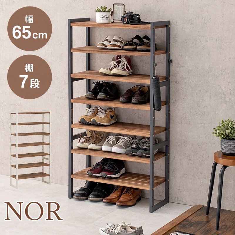 ■シューズラック 幅65cm 棚7段 シューズボックス 玄関収納 下駄箱 おしゃれ シンプル 省スペース 収納 玄関 靴置き ホワイト ブラウン ノ