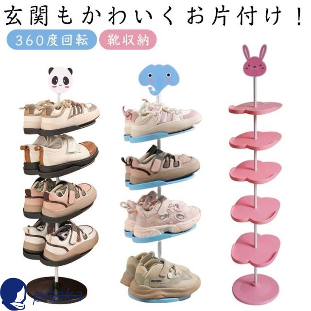シューズラック キッズ 子供 スリム 省スペース 360度回転 下駄箱 玄関収納 シューズホルダー おしゃれ 靴収納 靴箱 すき間 隙間 狭い 玄関 ディスプレイ 靴収納ラック 動物 アニマル パンダ 象 ウサギ
