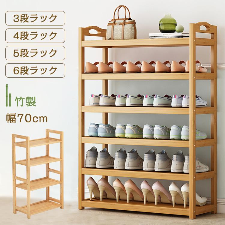 シューズラック 竹製 靴箱 下駄箱 靴棚 靴 収納 スリム 下足箱 靴ラック コンパクト 3/4/5/6段 幅70cm 玄関 会社 シューズ収納 家具 おしゃれ オープンラック