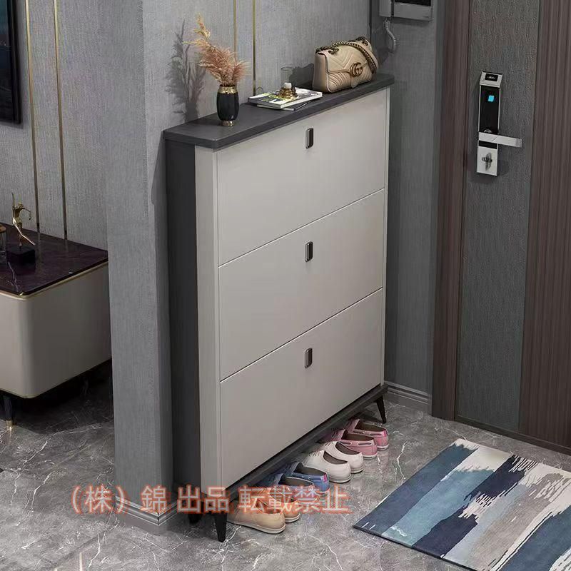 ■シューズボックス 靴箱 玄関収納 下駄箱 大容量 木製家具 扉付き 玄関収納 スリム 株式会社錦薄型 省スペース 3段 靴 収納 組み立て式 L6