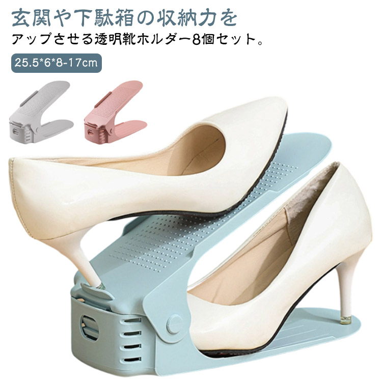 ■高さ調整 パンプス スニーカー 玄関収納 コンパクト 靴収納 靴ホルダー スリム 8足分 縦置き 省スペース 重ねて収納 クローゼット 下駄箱