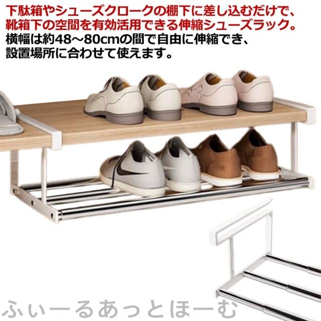 ■浮かせる伸縮シューズラック 玄関 靴収納 シューズラック 靴箱 靴入れ 靴棚 シューズクローク 省スペース 狭い 伸縮式 下駄箱 下駄箱下