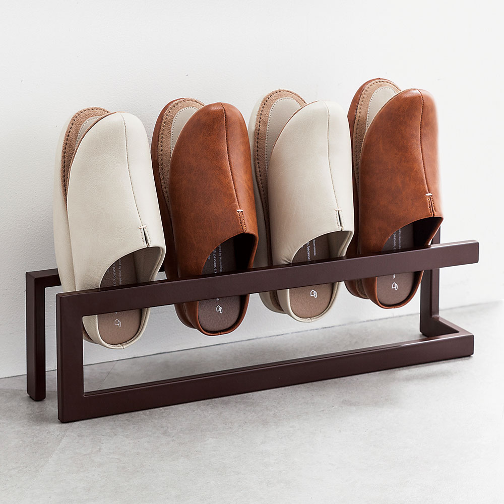 スリムでスタイリッシュな薄型スリッパラック。圧迫感のないデザインで玄関すっきり。