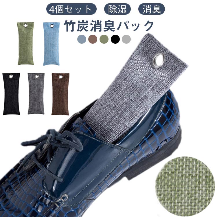 ■4個セット 100g 除湿 消臭パック 除菌 乾燥剤 竹炭 湿気取り 消臭 車用 靴用 室内 下駄箱 消臭剤 除湿剤 炭 革靴 吸湿 竹炭パック 家庭用