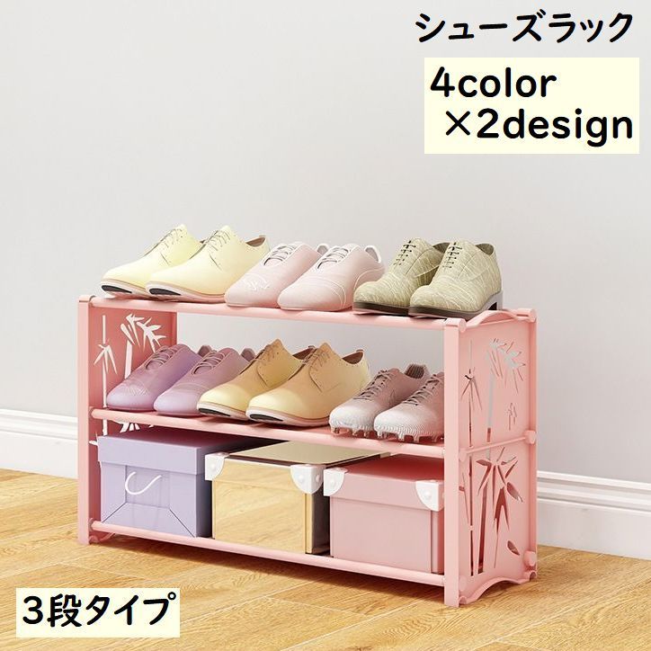 ■シューズラック 3段 靴置き 下駄箱 靴棚 くつ収納 靴収納 防水 汚れにくい プラスチック 可愛い 星 竹 簡単組み立て 収納