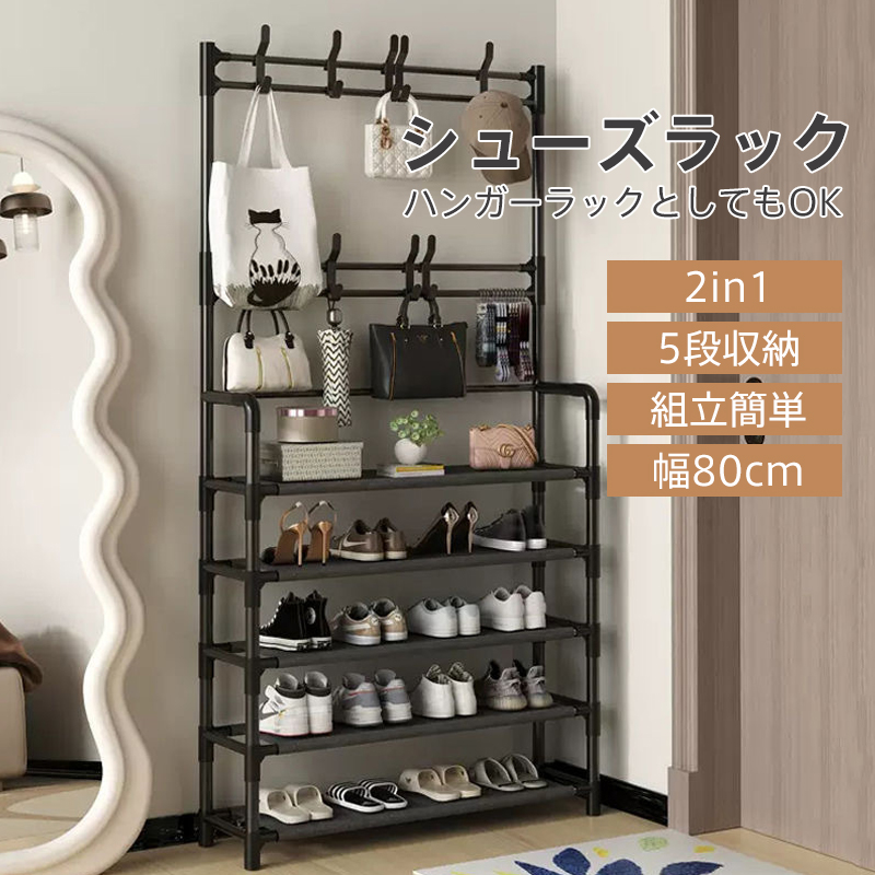 ■シューズラック 下駄箱 靴箱 収納 5層 シューズ収納 玄関収納 省スペース 組み立て式 多機能 収納棚 ハンガーラック バッグ掛