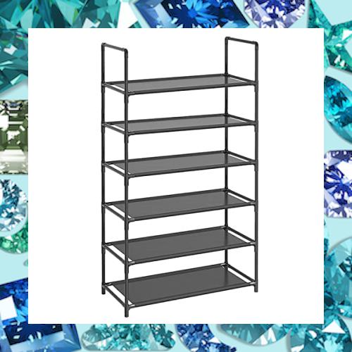 ■シューズラック 省 スペース 6段 15-20足収納可能 木目調 ( 棚 シューズ ラック 靴 収納 下駄箱 玄関収納 収納棚 玄関 リビング キッチ