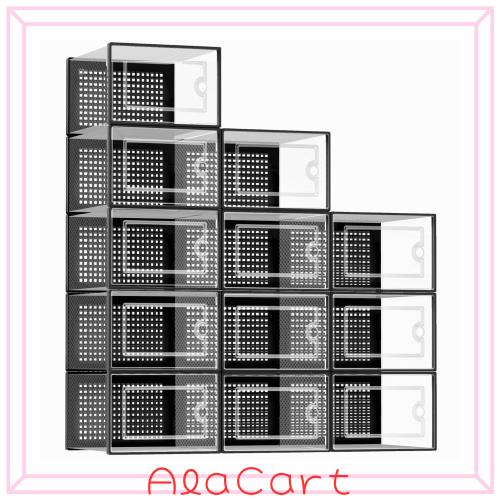 ■Kuject12個セットシューズボックス 多層積み重ね可能 収納ボックス シューズラック 靴棚 玄関収納 下駄箱 大容量シューズケース(ブラ