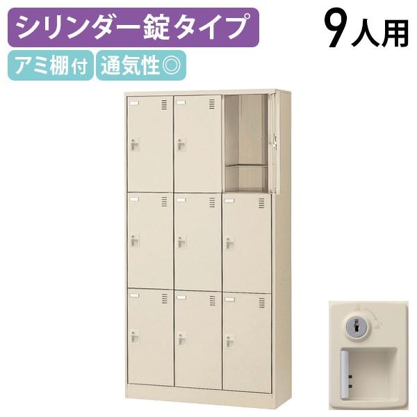 ■錠付きシューズロッカー 3列3段 9人用 下駄箱 スチール シューズボックス 鍵付き 代引不可 872407 法人宛限定