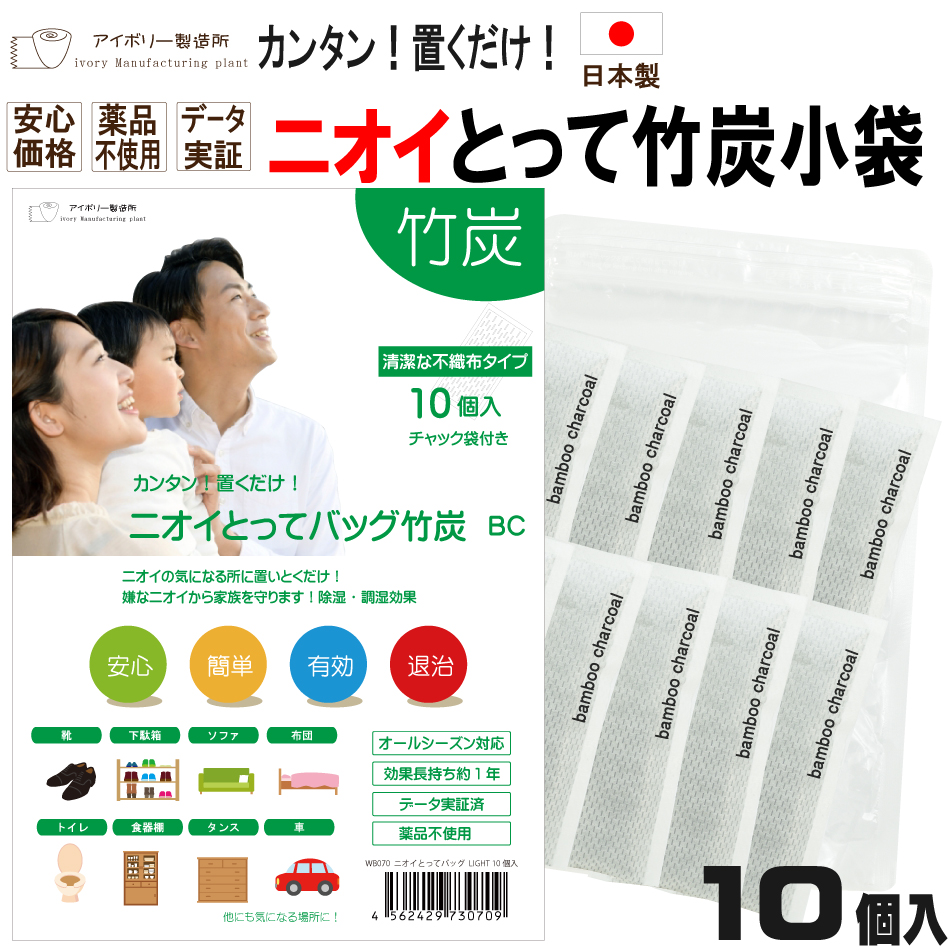 ■ニオイとってバッグ竹炭BC 10個入 日本製 送料無料 竹炭 消臭 調湿 除湿 カビ 結露 湿気 靴 下駄箱 トイレ クローゼット 食器棚 ソフ