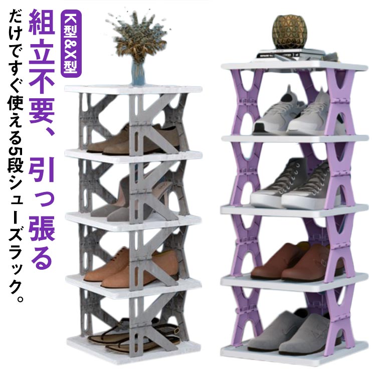 ■玄関収納 シューズラック シューズボックス 靴棚 靴箱 下駄箱 5段 組立不要 スリム 折りたたみ 靴 収納 下足箱 収納ボックス 傘ラック付