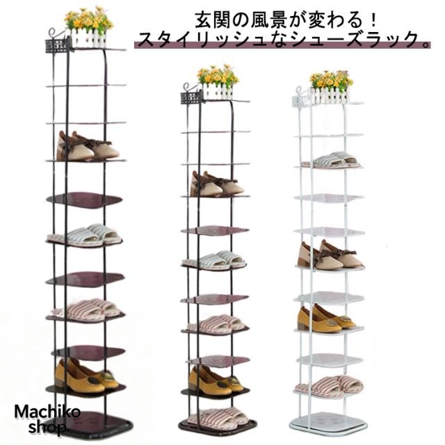 シューズフック 11足靴収納 11段 縦型 下駄箱 靴ラック シューズ収納 シューズ棚 ディスプレイ 玄関収納 収納家具 スリム 省スペース 収納 組立て簡単 工具不要 ネジ不要 簡単設置 無地 全3色