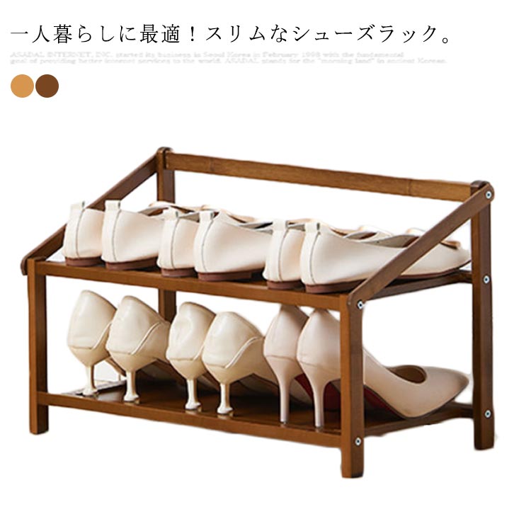 ■シューズラック 折りたたみ式 組立不要 スリム 靴箱 収納棚 下駄箱 2段 オープンラック 竹製 高級感 スリッパ収納 靴収納 防水 防滴 おし