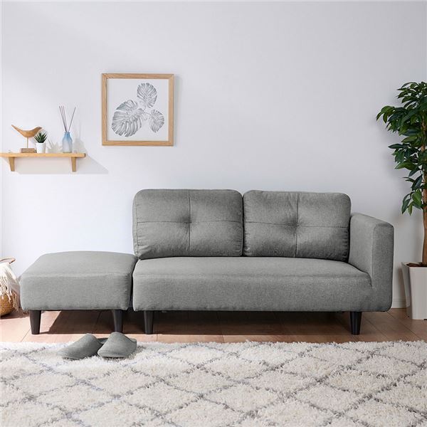 ■カジュアル カウチソファ グレー オットマン付 肘付き 2人掛け フロアソファ ローソファ