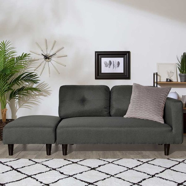 カジュアル カウチソファ ダークグレー オットマン付 肘付き 2人掛け フロアソファ ローソファ