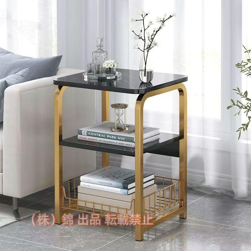 ■ナイトテーブルベッドサイド収納木製サイドテーブル株式会社錦スリムナイトテーブル,大理石柄3段ナイトテーブルサイドチェストベッドソ
