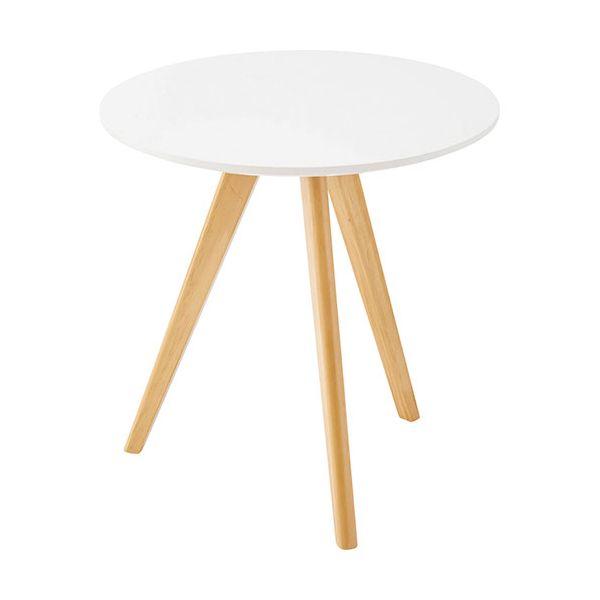 【商品説明】ラウンドサイドテーブル【特長】●ホワイトの天板と天然木の脚の組み合わせが温かみのある印象を与えてくれるサイドテーブル。●シンプルで無駄のないデザインがお部屋の雰囲気をお洒落に演出してくれます。●ベッドやソファのサイドテーブルとしてピッタリのサイズ。●フレームには天然木の風合いを活かしたパイン材を使用。ホワイトの天板との相性が良くフレンチカントリーテイストにもピッタリのテーブル。【仕様】サイズ:W50×D50×H50(cm)素材:合成樹脂化粧繊維板 天然木(パイン) ラッカー塗装静的耐荷重:10kg組立状態:組立式付属工具:六角レンチ組立人数:1人組立時間:10分原産地:中国※脚部はパイン材特有の節がございます