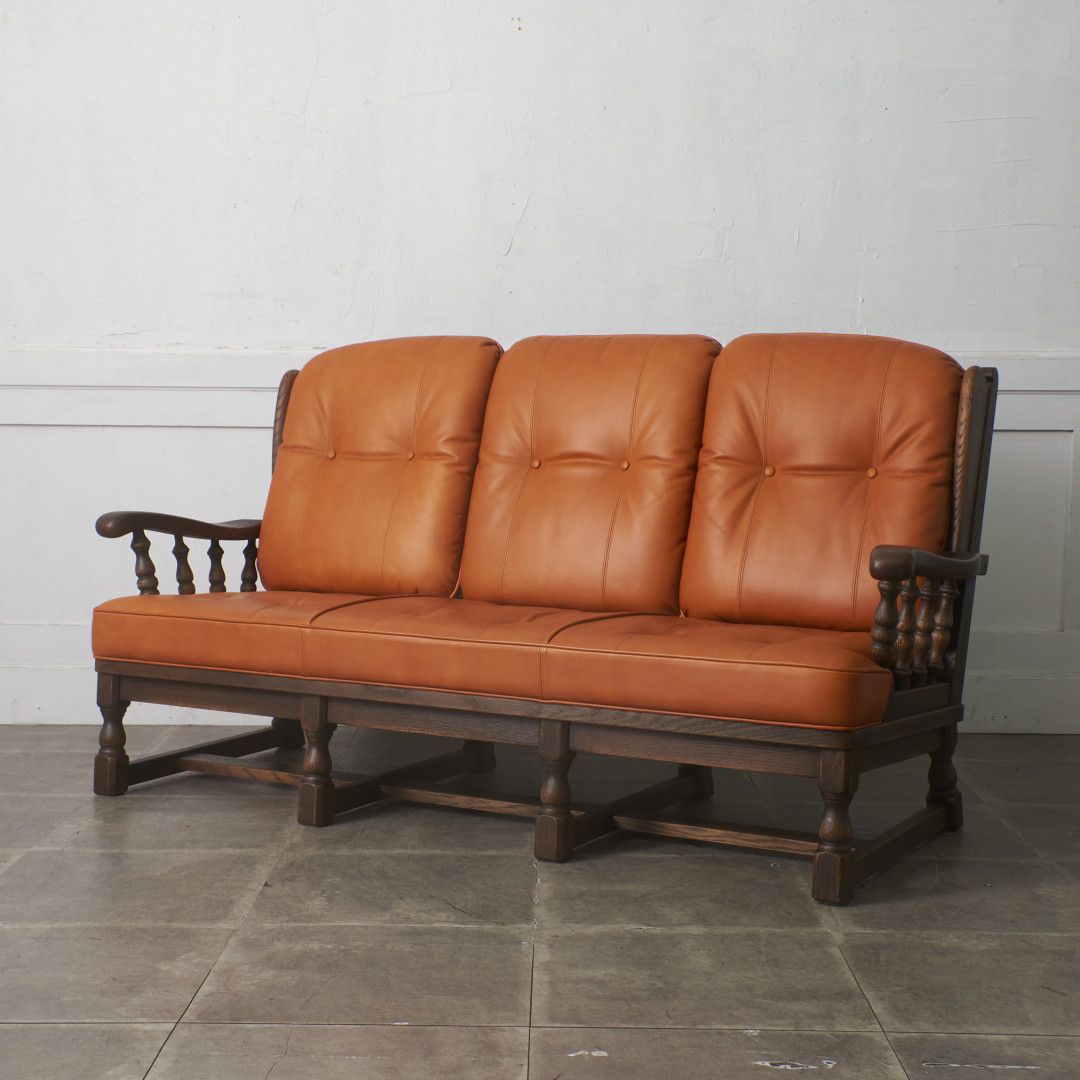 ■定90万 飛騨産業 キツツキ PROVINCIAL ソファ 本革 3人掛け 無垢材 トリプルソファ 3P プロヴィンシャル カントリー クラシック 97932