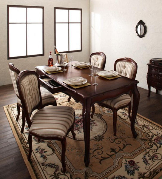 ■ダイニングセット 5点 5点セット 4人用 ヨーロピアン アンティーク 5点セットBタイプ (幅150+チェア×4) 【 ブラウン 茶色 】