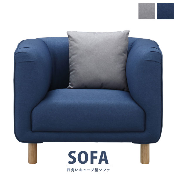 四角いキューブのようなデザインが特徴的なデザイナーズソファです。ストンとしたストレートタイプの脚部がソファ本体のデザインをより美しく引き立てます。取り外しも可能なので、ローソファとしてもお使いいただけます。張地はシンプルなファブリック素材なので、お部屋のインテリアの邪魔をせずどんなテイストにも馴染みます。ソファと同じ素材のリバーシブルクッションが付属します。 組立品 カラー:グレー/ネイビー サイズ(約):本体/幅90×奥行73×高さ72cm、座面高さ/42cm 重量(約):26kg 梱包サイズ(約):幅89×奥行75×高さ58cm/28kg 材質:木フレーム、Sバネ、ウィービングベルト、ポリエステル 仕様:組立式(工具不要)/脚ねじ込み式、ロータイプ使用可能、リバーシブルクッション1個付