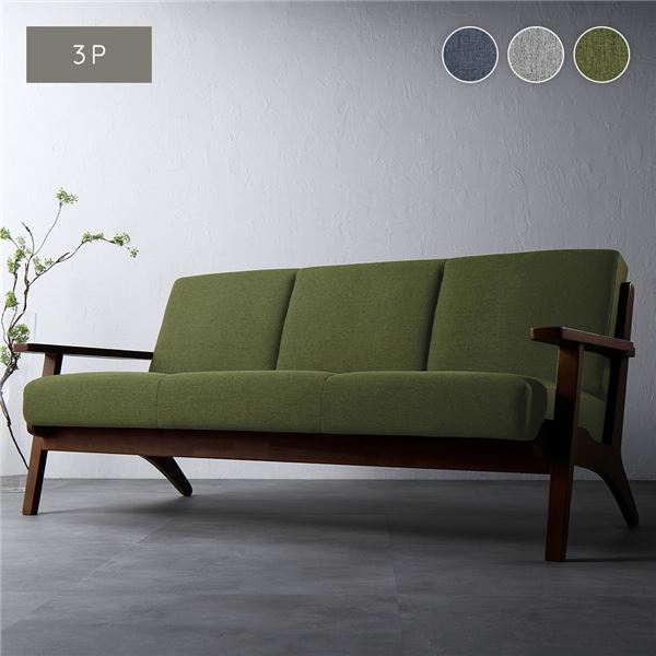 ■ソファ 3人掛け グリーン 肘付き 天然木 木肘 木枠 北欧風 VARANOJD ヴァーラネイド ソファー デザイナーズ 組立品 3人掛けソファー ダイ