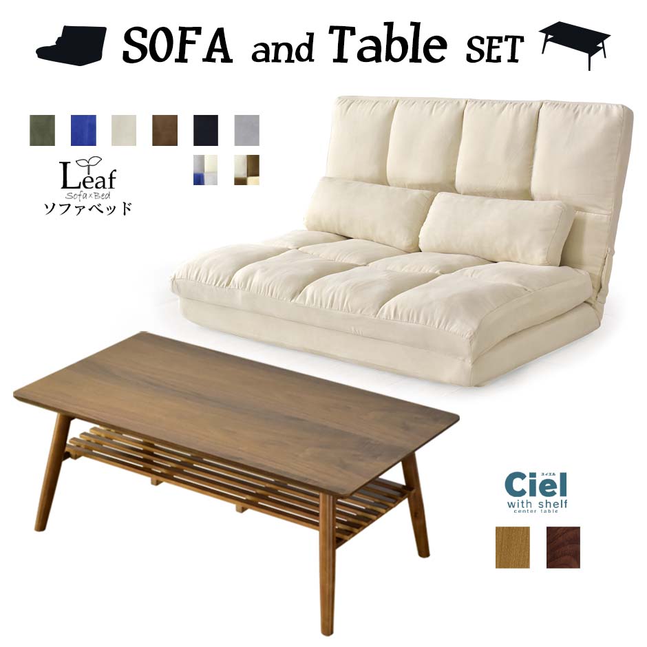 ■ソファベッド センターテーブル セット ソファ ベッド ローソファ リクライニング 1人掛け 2人掛け テーブル 角形 木製 棚付き 西海岸 リ