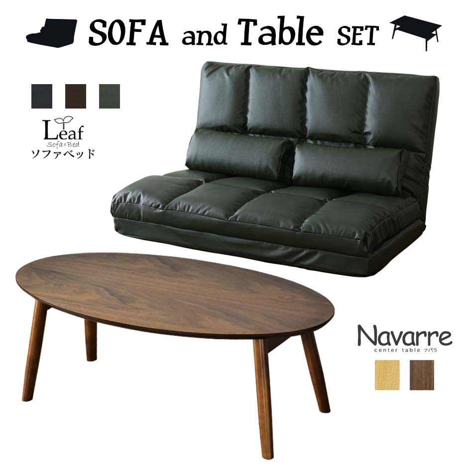 ■ソファベッド センターテーブル セット ソファ ベッド ローソファ リクライニング ローテーブル 2人掛け アイアン ウッド リーフSD アニ