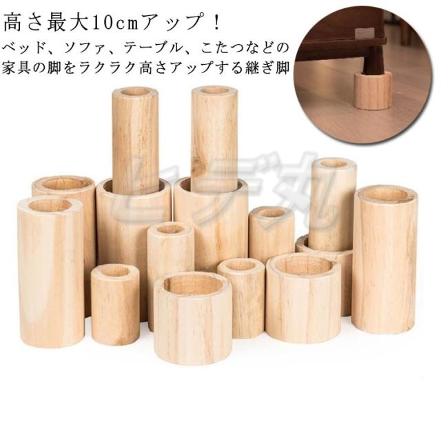 ■送料無料 継ぎ脚 4個組 丸型 脚継ぎ 木製 こたつ継ぎ脚 高さ調整 継脚 継ぎ足 テーブル 机 ソファ ベッド リビング 寝室 家庭用 家具 高