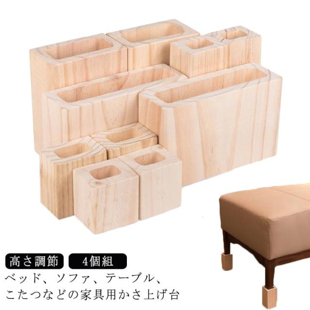 ■こたつ 継脚 4個セット 木製 テーブル ソファ 机 継ぎ足 脚台 角型 家具 かさ上げ台 置き台 高さ調整 高さアップ かさあげ台 こたつ継脚