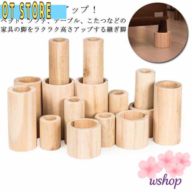 ■全18サイズ!天然木 テーブル 継ぎ脚 4個セット 丸型 こたつ用 木製 ソファ 机 継ぎ足 高さ調整 高さアップ かさ上げ台 置き台 テーブル