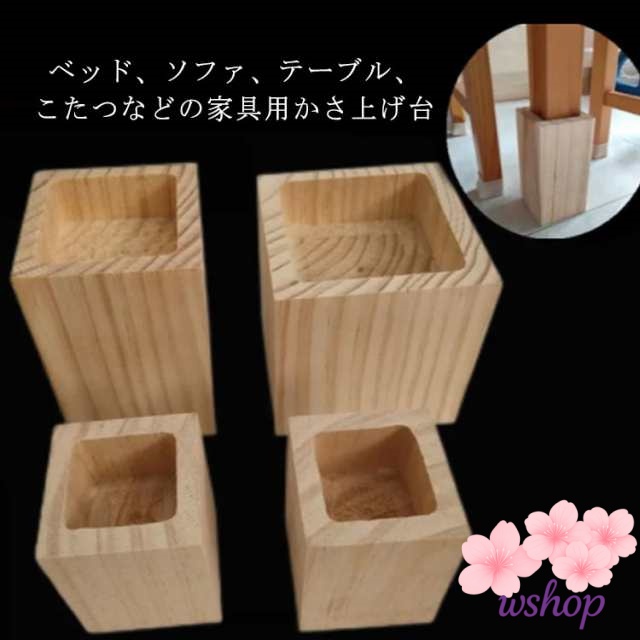 ■こたつ 継脚 4個セット 木製 テーブル ソファ 机 継ぎ足 脚台 角型 家具 かさ上げ台 置き台 高さ調整 高さアップ かさあげ台 こたつ継脚