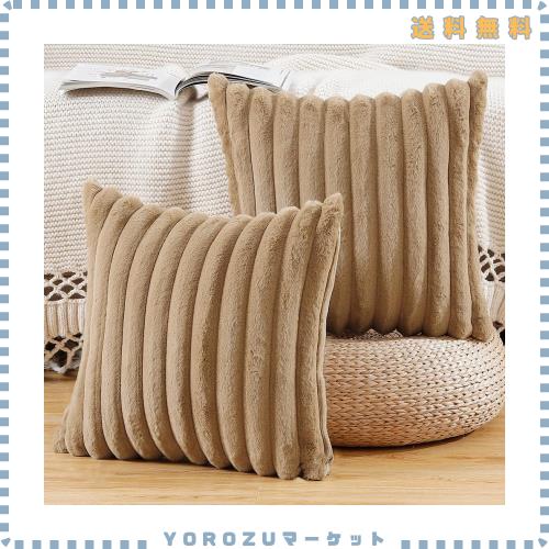 ■MADIZZ 2枚セット フェイクファー プラッシュ スローピローカバー ふわふわストライプ ソフト装飾クッションカバー ソファ ベッドルーム