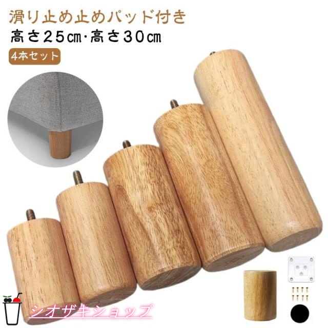 4本セット 高さ調整 継足 置き換え 25cm 30cm 4本セット 継ぎ脚 継脚 キャビネット足 丸 円柱 円筒 ソファ足 テーブル足 ソファ 机足 天然木 家具足 頑丈 テーブル 机 デスク ベッド ソファー かさ上げ台 サポート脚 足の交換用 家具パーツ ベージュ ナチュラル