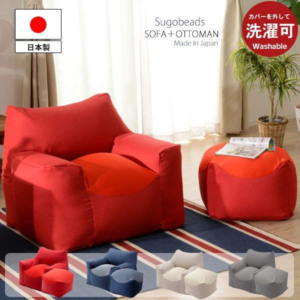 ■ソファ ソファー ビーズソファ+オットマンの2点セット 足置き 人をダメにするスゴビーズ 日本製 カバーが洗える ビーズソファ おしゃれ