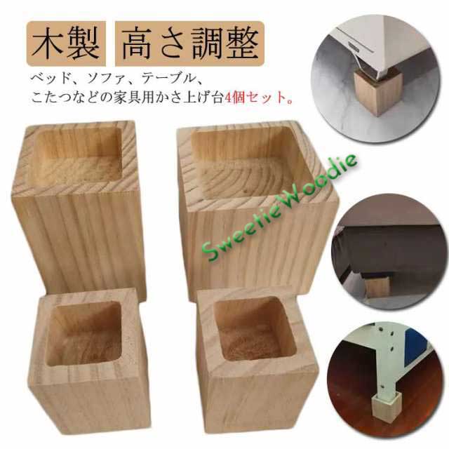 4個セット こたつ 継脚 木製 継ぎ足 テーブル 高さ調整 高さアップ かさ上げ台 角型 ソファ 家具 机 ベッド こたつ継脚 継ぎ脚 置き台 ナチュラル 底上げ 掃除便利