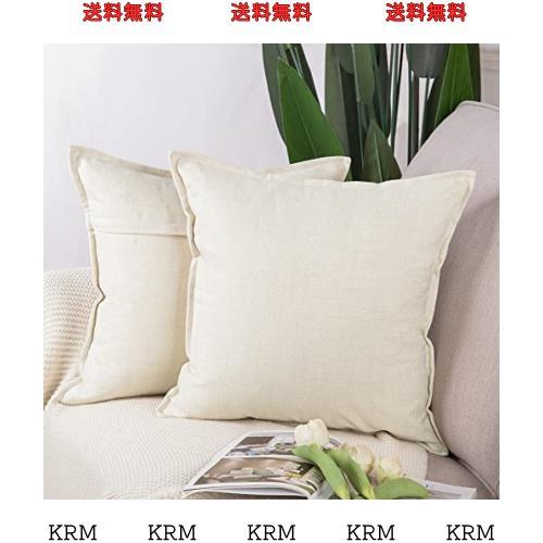 ■Madizz リネンスローピローカバー2枚セット ソフト装飾クッションカバー ソファ 寝室用 枕シェル 60*60 cm ホワイト