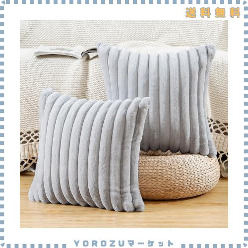 ■MADIZZ 2枚セット フェイクファー プラッシュ スローピローカバー ふわふわストライプ ソフト装飾クッションカバー ソファ ベッドルーム