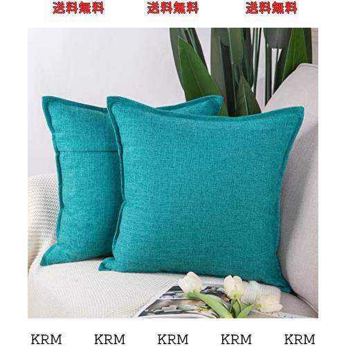 ■Madizz リネンスローピローカバー2枚セット ソフト装飾クッションカバー ソファ 寝室用 枕シェル 65*65 cm ティール