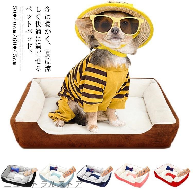 ペット ベッド マット 小型犬 中型犬 4点セット ふわふわ ソファ 暖かい ござ ベッド 春 夏 秋 冬 毛布 おもちゃ スクエア ペットベッド 猫