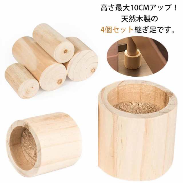 丸型 4個セット かさ上げ台 こたつ用 ベッド ソファ テーブル脚台 テーブル 机 高さ調整 継ぎ足 木製 継ぎ足 継足し 家具脚 4個セット 長脚 底上げ ナチュラル 掃除便利