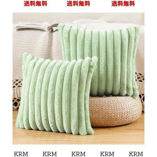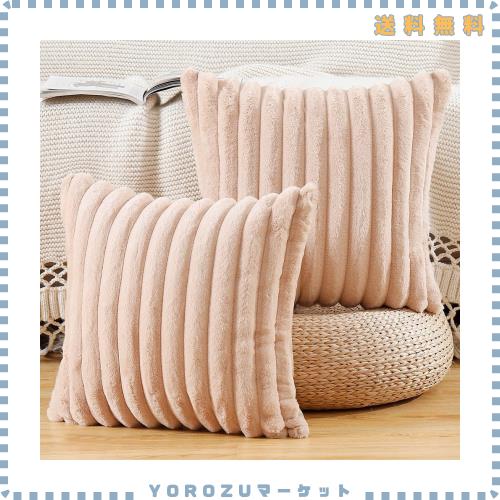 ■MADIZZ 2枚セット フェイクファー プラッシュ スローピローカバー ふわふわストライプ ソフト装飾クッションカバー ソファ ベッドルーム