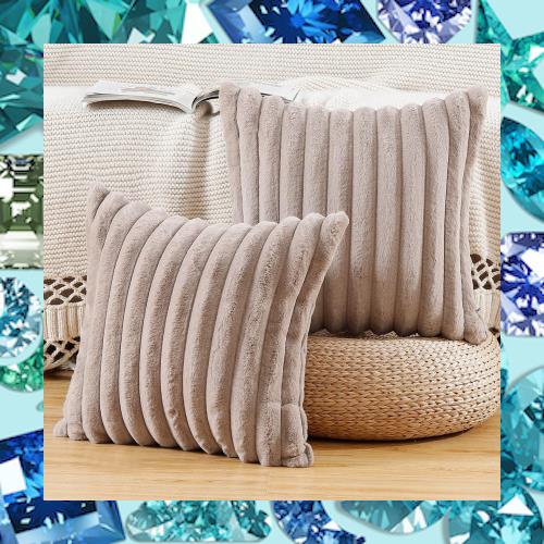 ■MADIZZ 2枚セット フェイクファー プラッシュ スローピローカバー ふわふわストライプ ソフト装飾クッションカバー ソファ ベッドルーム