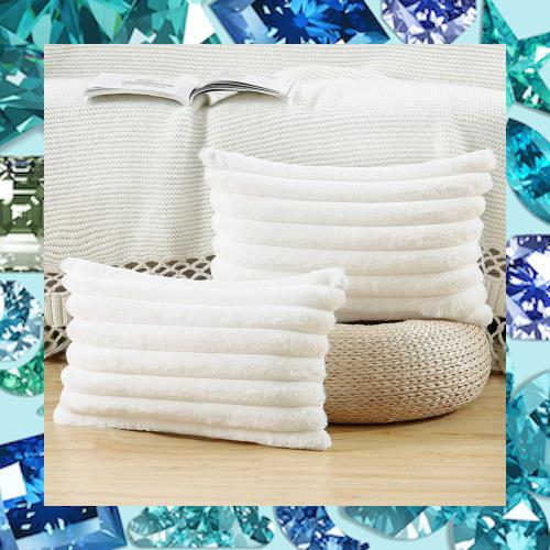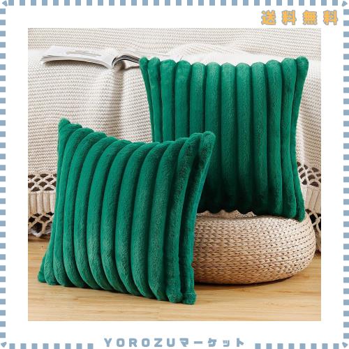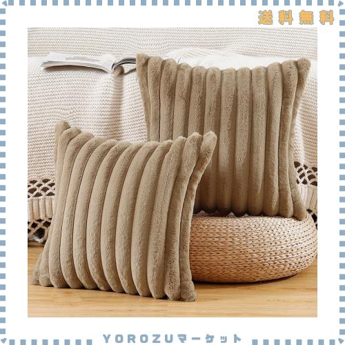 ■MADIZZ 2枚セット フェイクファー プラッシュ スローピローカバー ふわふわストライプ ソフト装飾クッションカバー ソファ ベッドルーム