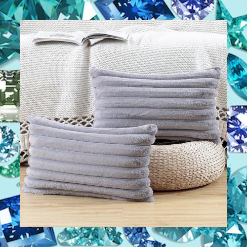 ■MADIZZ 2枚セット フェイクファー プラッシュ スローピローカバー ふわふわストライプ ソフト装飾クッションカバー ソファ ベッドルーム