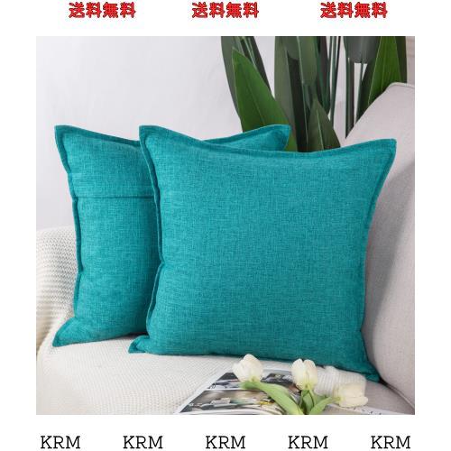 ■Madizz リネンスローピローカバー2枚セット ソフト装飾クッションカバー ソファ 寝室用 枕シェル 45*45 cm ティール