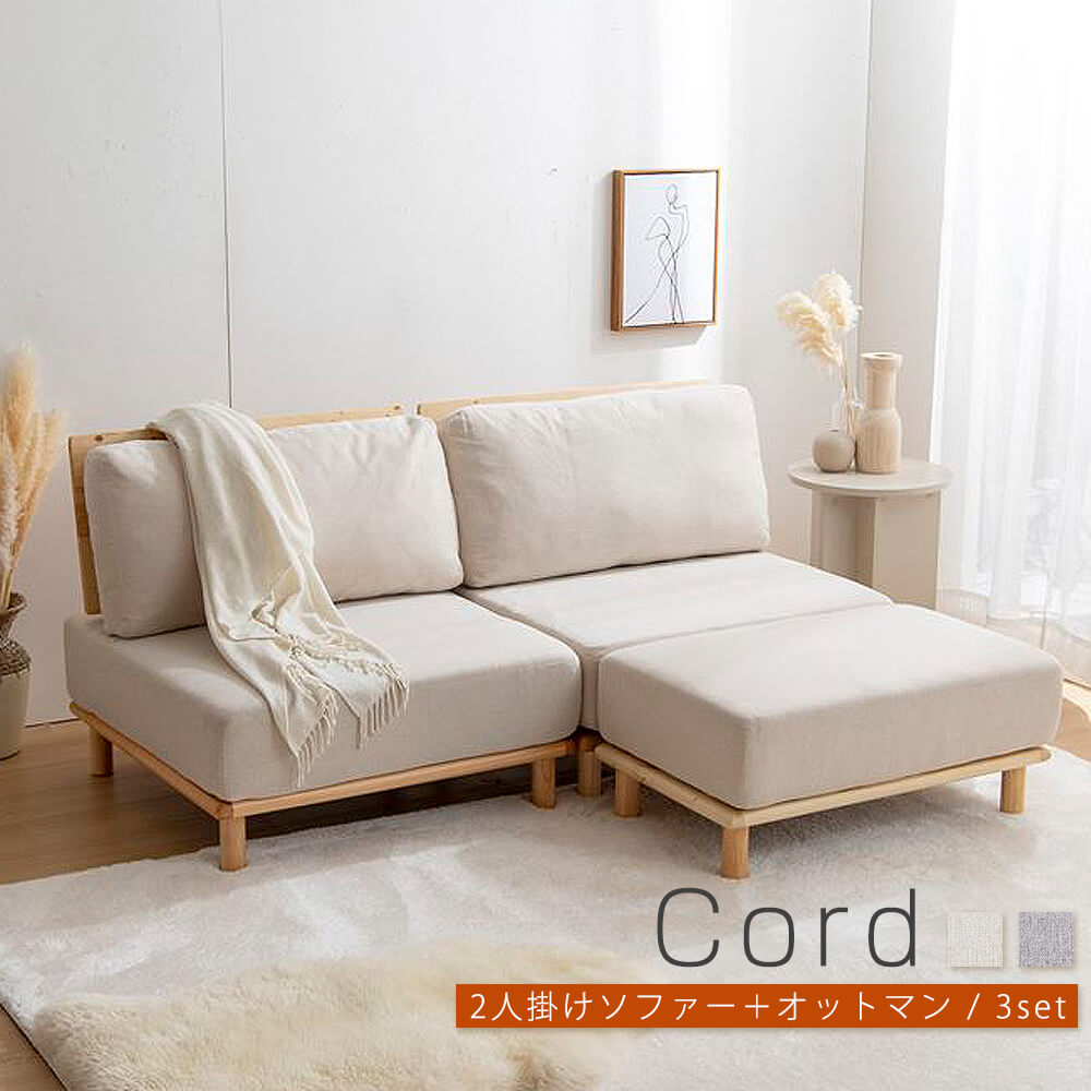 ■Cord(コルド)2人掛けソファー+オットマン 幅160cm ソファ ソファー ローソファ 2人掛けソファ オットマン セット