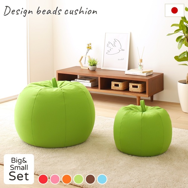 ■ビーズクッション ソファ グリーン スモール ビッグ セット 日本製 国産 リラックス りんご アップル 軽量 取っ手付き クッション 一人掛