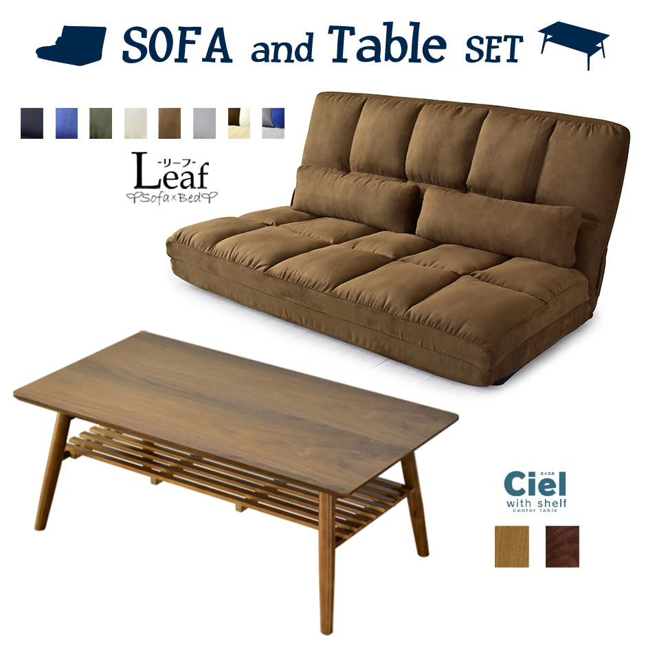 ■ソファベッド センターテーブル セット ソファ ベッド ローソファ リクライニング ローテーブル 2人掛け 角形 木製 西海岸 リーフSD スィ