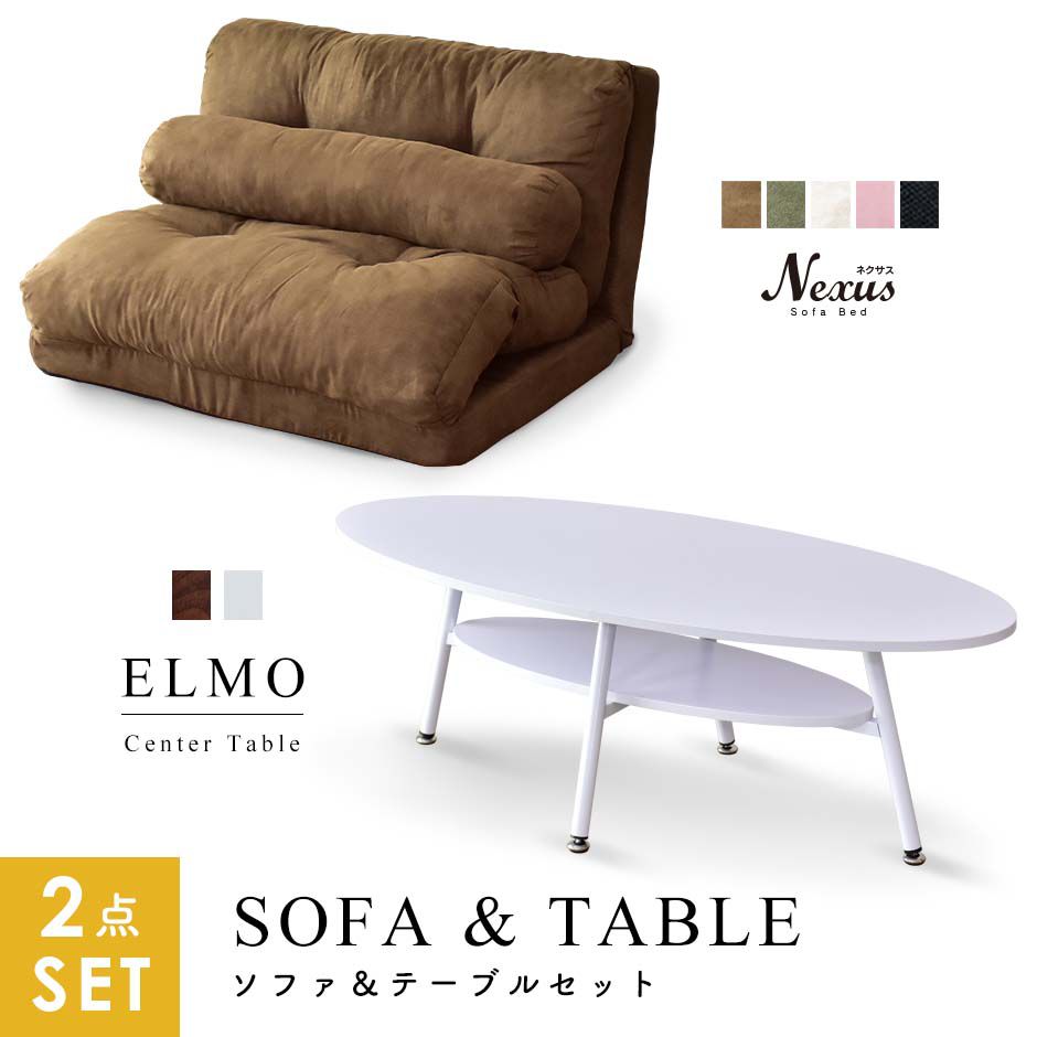 ■ソファベッド センターテーブル セット ソファ ベッド ローソファ リクライニング 折りたたみ 2人掛け 楕円形 木製 棚付き 折り畳み 西海