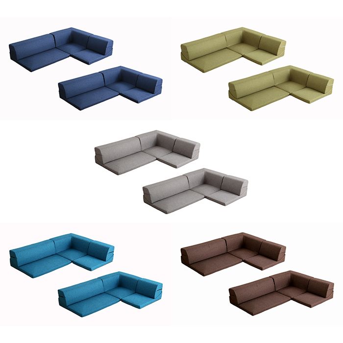 ■北海道・沖縄・離島配送不可 代引不可 コーナーフロアソファ 3人掛け 同色2セット Linaria 6人掛け ソファ ロータイプ ファブリック 組み